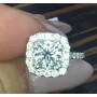 Thirty-four brilliant diamonds weighing 1/2cts are micro prong set in this delicate halo mounting framing 1.00 ct Ideal2 Square Diamond center diamond in 14K white gold. This beautiful engagement ring is a perfect choice for the elegant shape of the Ideal2 diamond center diamond,