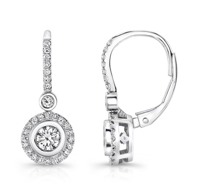 18K White Gold Diamond Lined Band and Prong Engagement Ring