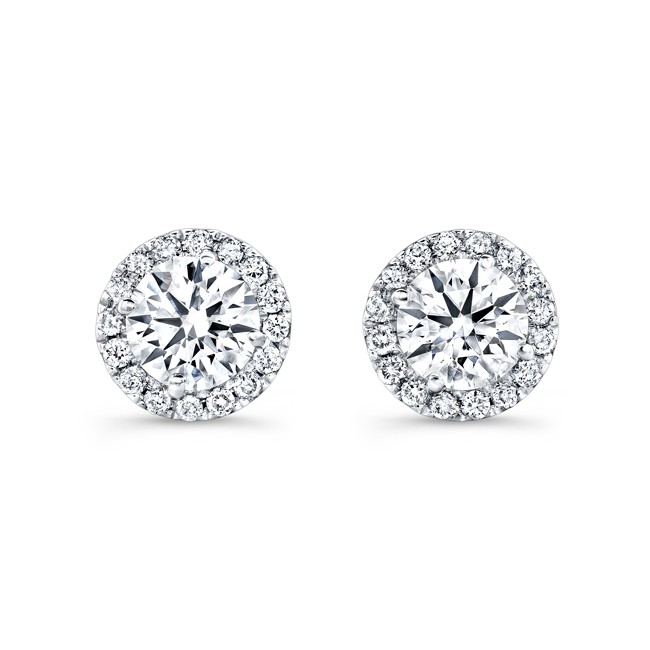 18K White Gold Diamond Halo Stud Earrings