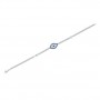 This 14k white gold blue diamond evil eye bracelet is adorned with a center evil eye decorated with 22 brilliant round white diamonds totaling 0.14 ctw., and 30 blue diamonds totaling 1/5 ctw. and two mini enamel evil eyes. This bracelet is a fantastic addition to your jewelry collection, symbolizing protection.