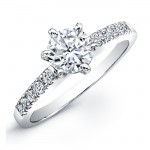 14Kt white gold diamond wedding ring prong set with five sparkling diamonds in center row. Micro prong set diamonds frame center row and add delicate finish to elegant classic wedding ring from Coby Madison's Jewelry Collection. This is the perfect wedding ring, anniversary ring, or that special unique diamond ring you will cherish forever.